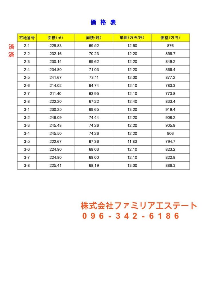 セブンイレブン熊本富合釈迦堂店そば! 土地/分譲地熊本市南区富合町釈迦堂(全16区画)価格773.8万円~919.4万円最寄り交通機関元三町バス停 徒歩37分 所在地熊本市南区富合町釈迦堂597の西側土地面積211.4m2 (63.94坪)~246.09m2 (74.44坪)建ぺい率/容積率40% / 80%区画数 全16区画 / 販売14区画 地目宅地用途地域指定なし接面道路学校区富合小学校・富合中学校建築条件建築条件なし引き渡し即時取引態様仲介備考・コメント・建築条件なし ・集落内開発区域 詳細資料をダウンロードする