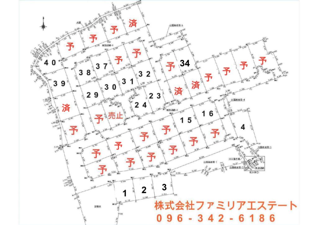・開発地内の都市計画道路がかかる区画については、建築確認申請時に都市計画法53条許可申請が必要: 4・15・16・20・21・22・23・24・28・29・30・31・32・37・38・39・40号地