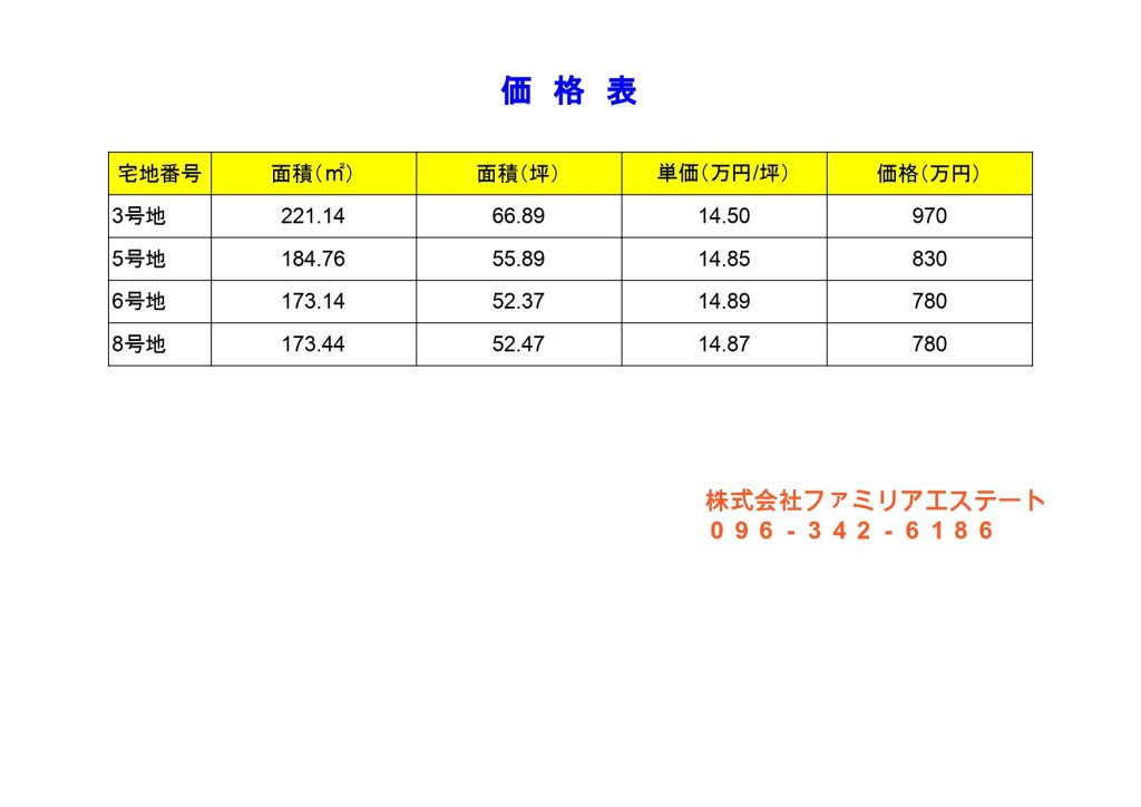 【価格変更しました】スーパーまで徒歩圏内の8区画分譲地! 土地/分譲地熊本市南区城南町下宮地(全8区画)価格780万円~970万円最寄り交通機関浜戸川橋バス停 徒歩10分所在地熊本市南区城南町下宮地土地面積173.14m2 (52.37坪)~221.14m2 (66.89坪)建ぺい率/容積率60% / 200%区画数 全8区画 / 販売4区画 地目宅地用途地域第一種住居地域接面道路分譲地内 公道 幅員約5m学校区隈庄小学校・下益城城南中学校建築条件建築条件なし引き渡し相談取引態様仲介備考・コメント・建築条件なし 詳細資料をダウンロードする